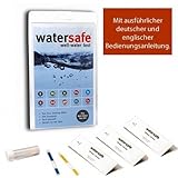 - Testen Sie Ihr Wasser auf potentiell schädliche Bakterien, Nitrate & Nitrite, sowie Blei, bestimmen Sie Ihre Wasserhärte (GH), den pH Wert und Chlorgehalt