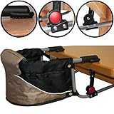- Universelles Befestigungssystem, praktisch und sicher, dank Klemmen und justierbare Schraube ermöglicht die die den Kindersitz einklemmen von mehreren unterschiedlichen Arten von Tisch (Dicke 3,5 cm höchstens)