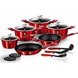 - Kochgeschirr aus 12 Teilen: 1 Topf, 4 Kasserollen und eine Pfanne mit Antihaftbeschichtung; alle Teile mit Deckel