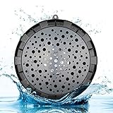 - ♬[WASSERDICHT]: Dieser Lautsprecher wurde hergestellt, um in der Dusche verwendet zu werden. Vollständig wasserdicht, wird er nicht durch das Wasser beschädigt werden und kann sogar in Wasser bis zu 3 Meter Tiefe eingetaucht werden. Entspannen Sie in der Dusche und hören Sie Ihre Lieblings-Songs! Nehmen Sie ihn auch mit ins Schwimmbad, Strand oder in die Ferien (leicht und einfach zu tragen).