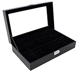 - Klassisches Design - In den Deckel ist eine Glasscheibe als Sichtfenster eingelassen. Das Präsentationsfenster aus Echtglas präsentiert ideal Ihre Lieblingsuhren edel und eindrucksvoll hinter Glas. Er besitzt einen schwarzen Kunstlederbezug mit weißen Kontrastnähten, und sieht edel aus
