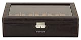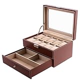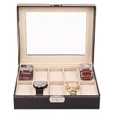 - Praktische Aufteilung - 2 Ebenen. Platz für 10 Armbanduhren: 10 Fächer für Uhren sind durch ein Glasfenster im Deckel einsehbar, drei weitere Fächer für Schmucke und andere kleine Sachen befinden sich in der unteren Schublade