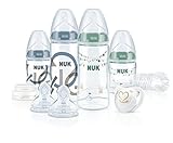 - 2 x NUK First Choice+ Babyflasche aus Polyamid (PA), 150 ml mit Silikon-Trinksauger 0-6 Monate, S für Tee und 2 x NUK First Choice+ Babyflasche aus Polyamid (PA), 300 ml mit Silikon-Trinksauger 6-18 Monate, M für Milch