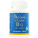 - ★ VEGAN & HOCHDOSIERT: 1000 mcg Vitamin B12 Tabletten in ihrer bioaktiven Form, genannt Methylcobalamin. Das hochdosierte Methylcobalamin wird bei VELLVIE aus Mikroorganismen gewonnen (nicht syntetisch) gewonnen. Unsere Vitamin B12 Tabletten sind klein und daher leicht zu schlucken und der Geschmack ist neutral. Für eine Dauerversorgung und zusätzlich zum Ausgleich von kurzfristigem Vitamin B12 Mangel super geeignet.