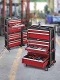 - PRODUKT-DETAILS: Maße = 770 x 335 x 690mm | Maße ohne Räder = 620 x 335 x 660mm | Farbe = Rot | Räder = 5" x 2" | Schubfächer = 510 x 277 x 100mm | Gesamtgewicht = ca. 26kg