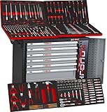 - Top Werkzeugwagen mit 6 bestückten Schubladen - umfangreiches Sortiment mit Ratschen, Nüssen, Bit Set, Schraubendrehern, Imbus Bits, Zangenset, Maulratschenschlüsseln, Hammer etc.