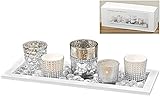 - Windlicht Teelicht auf Tablett Weiß mit Strass 7 tlg Landhaus - ohne Kerze