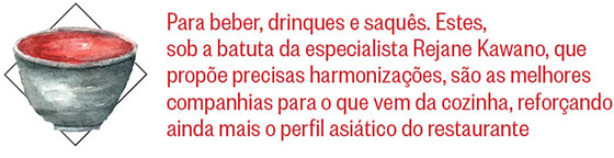 Yumê Com 12 anos de estrada, a simpática casa serve uma cozinha japonesa com alguma influência de outros países orientais. Entre os clássicos, a lula recheada com cogumelos e queijo de búfala, o sashimi no maçarico e o tartare de salmão com camarão e ovas. Rua Pacheco Leão, 758, Jardim Botânico. Tel. 3205-7321. yumekin.com