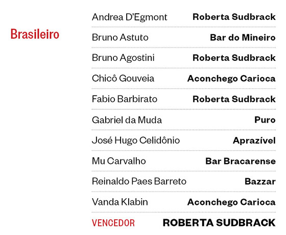 Bar do Mineiro Uma cozinha brasileira, com tempero caseiro e raízes mineiras. Faz sucesso entre cariocas e turistas, com feijoada (e um pastel recheado com ela), tutu à mineira, carne-seca com abóbora e rabada. Para beber, batida de lima-da-pérsia e licor de gengibre. Rua Paschoal Carlos Magno, 99, Santa Teresa. Tel. 2221-9227. bardomineiro.net