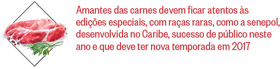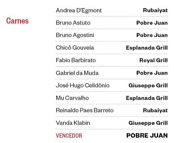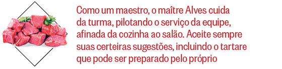 Esplanada Grill Ganhou recentemente uma moderna filial no hotel Trump, da Barra, levando algumas das melhores carnes do Brasil, preparadas à perfeição. Entre as mais pedidas estão costeletas de cordeiro, ancho, picanha e prime rib. Rua Barão da Torre, 600, Ipanema. Tel. 2512-2970. esplanadagrill.com.br