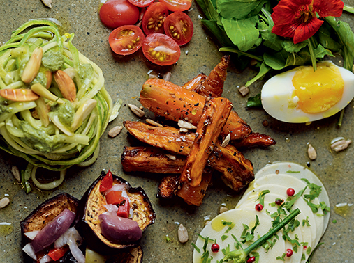 ARTESANAL. Talharim de abobrinha ao pesto, saladas e carpaccio de palmito. O cardápio, com produtos locais e orgânicos, muda diariamente