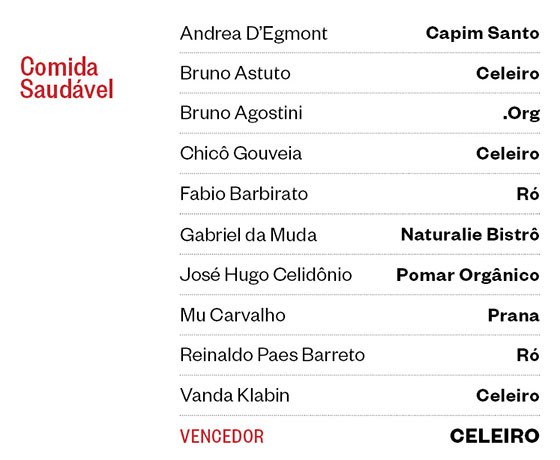 Ró – Raw & Wine Uma das grandes novidades de 2016, não apenas por servir uma comida original e deliciosa, além de leve e saudável, mas por ser único na categoria. Não é apenas um vegetariano, segue a linha “raw food”, ou seja, comida crua. Não há fogões na cozinha e nenhum alimento passa de 42 graus em seu preparo. Rua Pacheco Leão, 102, Jardim Botânico. Tel. 3559-0102.