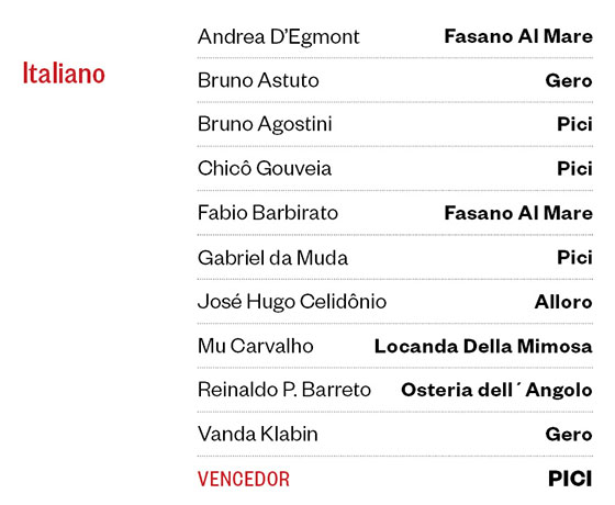 Alloro O chef italiano Luciano Boseggia é conhecido pelos risotos, mas o cardápio apresenta muito mais, como a costeleta de cordeiro em crosta de ervas. Indicado em italiano e restaurante do ano. Av. Atlântica, 1.020, Copacabana. Tel. 2195-7857. allororistorante.com.br