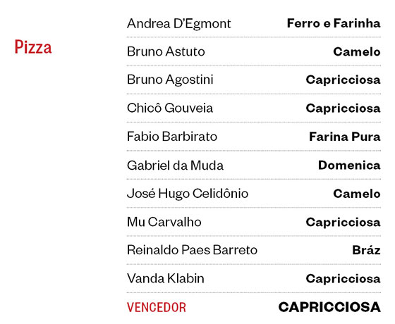 Camelo Novidade com DNA paulista, inaugurada em 1957, fez sua estreia carioca neste ano, servindo suas pizzas tradicionalistas assadas em forno a lenha. Entre as especialidades, a que leva o nome da casa tem escarola, aliche, ovos, palmito e azeitonas pretas. Av. Henrique Dumont, 57, Ipanema. Tel. 2274-2303. pizzariacamelo.com.br