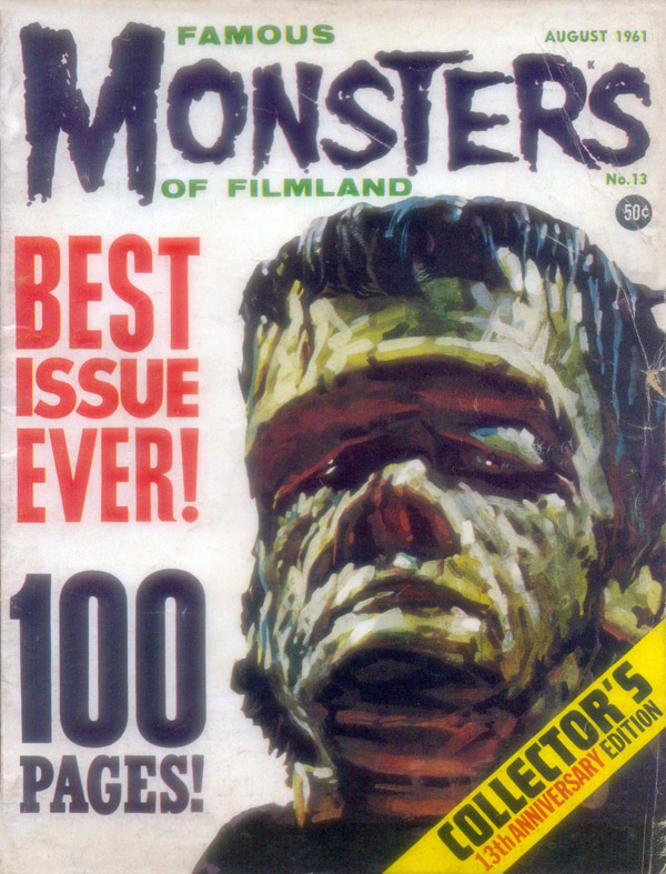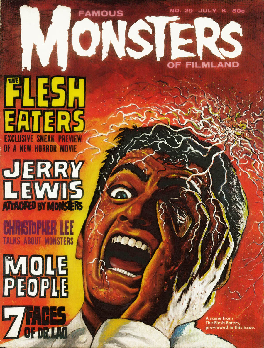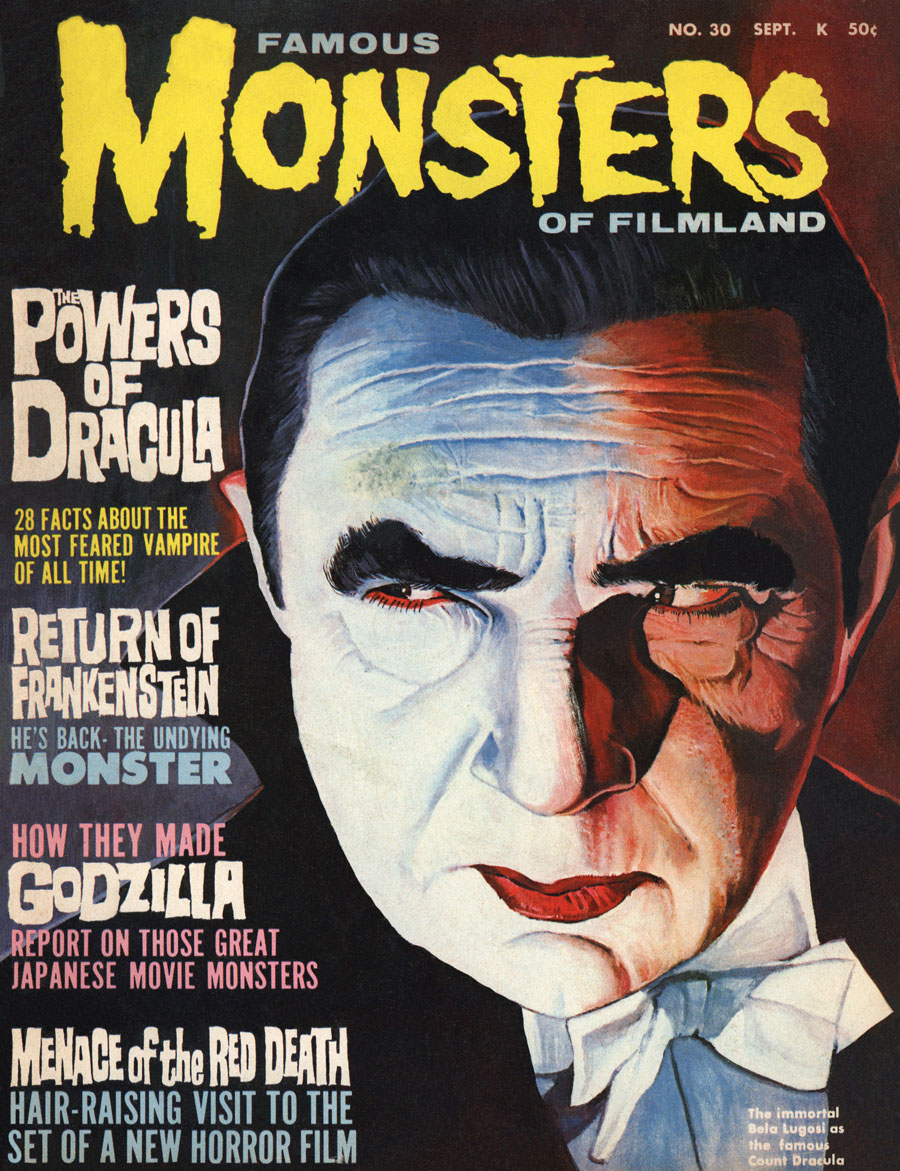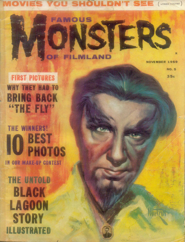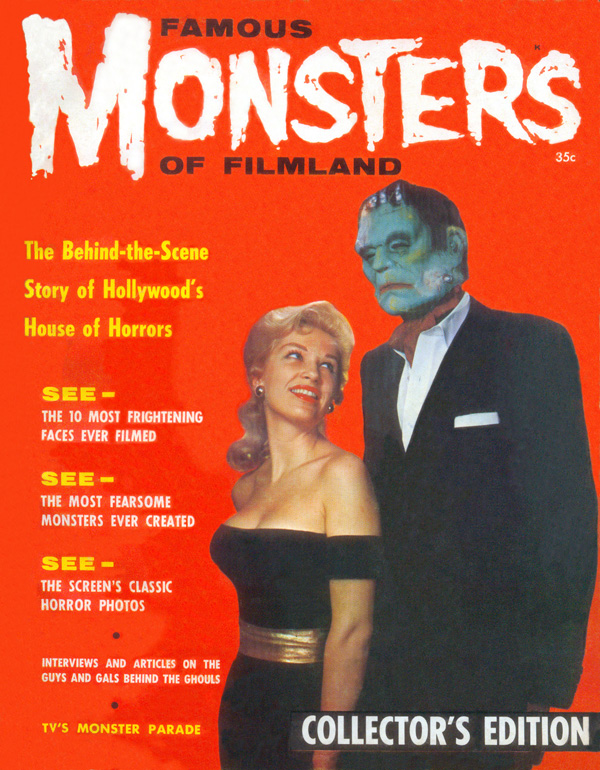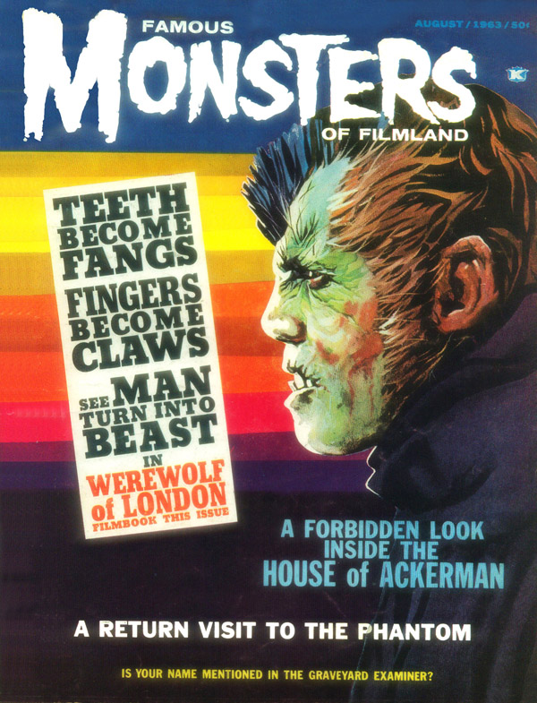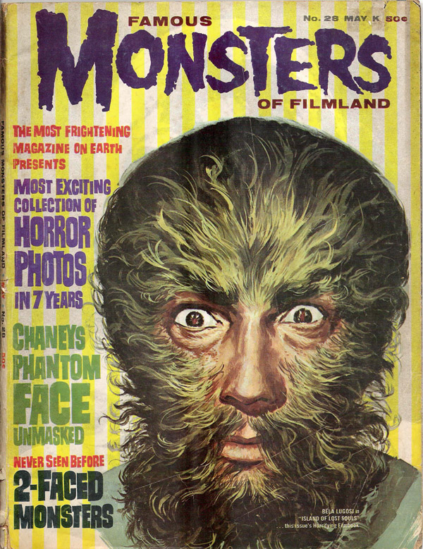 The first and best Monster Magazine was named Famous Monsters Of the Filmland. It was published for decades by James Warren and edited by Forrest J. Ackerman from 1958 to 1983. With Warren as publisher the magazine eventually produced 191 issues, all with Ackerman as the editor. It was revived in several forms in the years following and is still being published annually although without the success of its earlier years. I am presenting only the first 30 issues, the ones that I'd read or wanted to read. To see them, click on the issue that interests you.