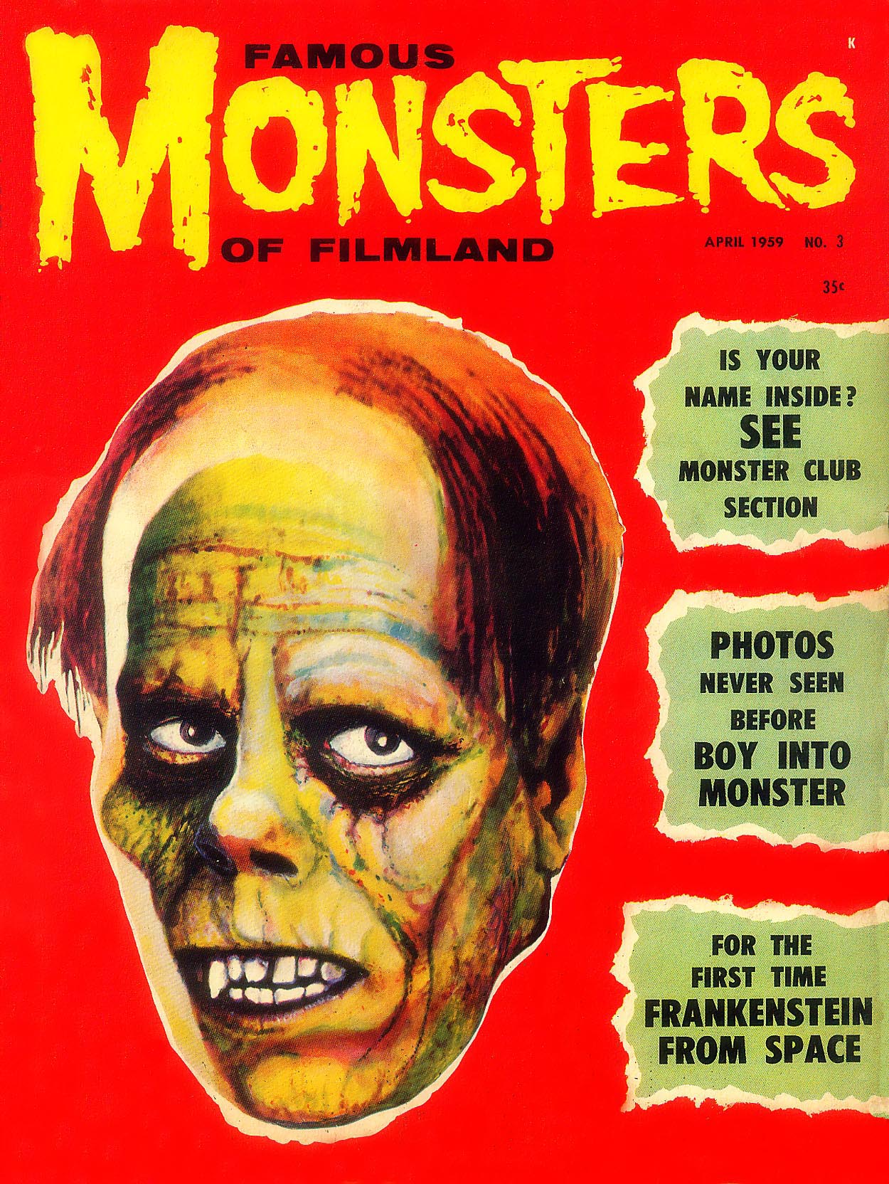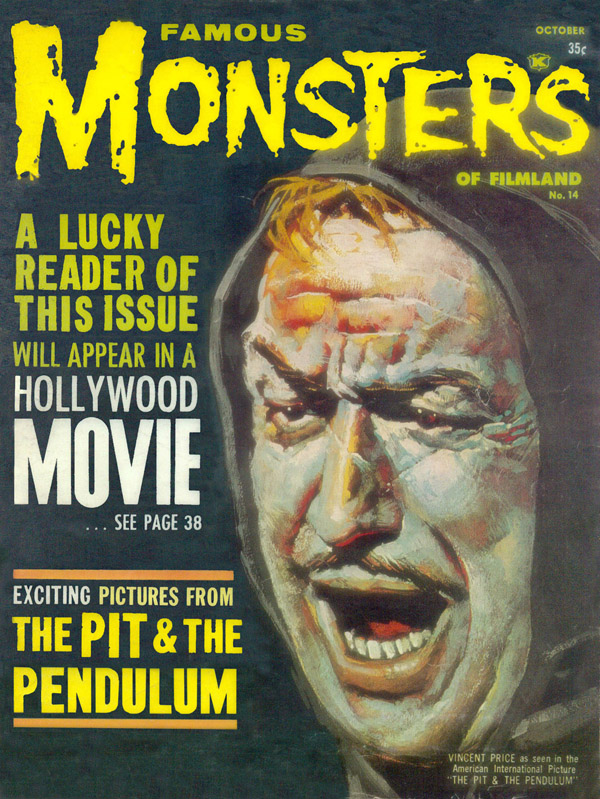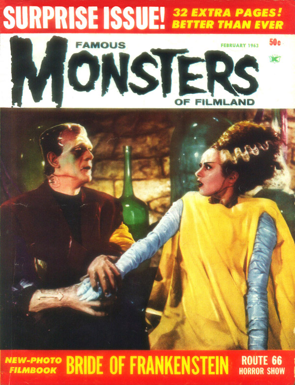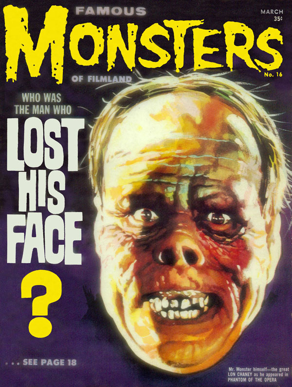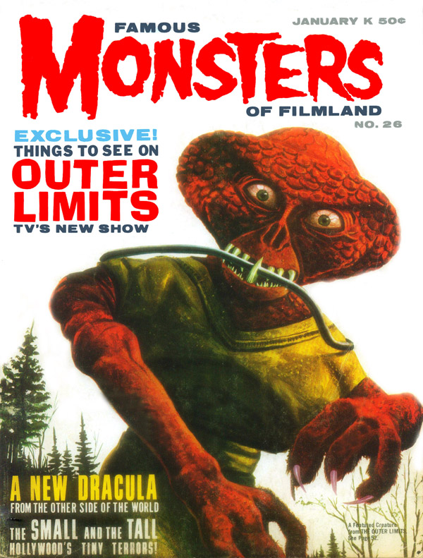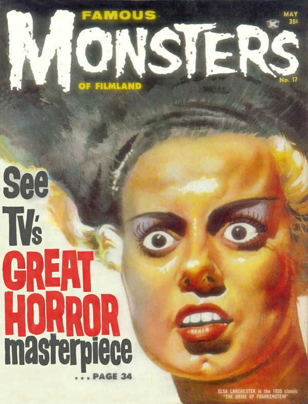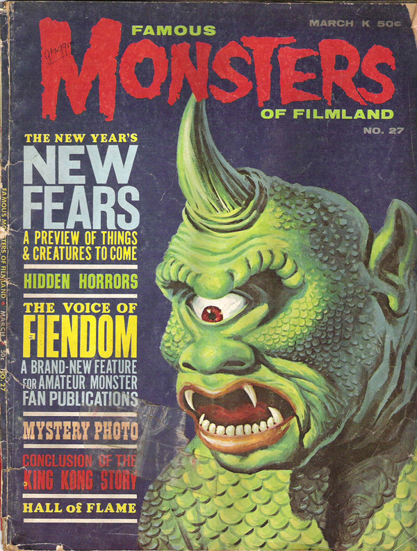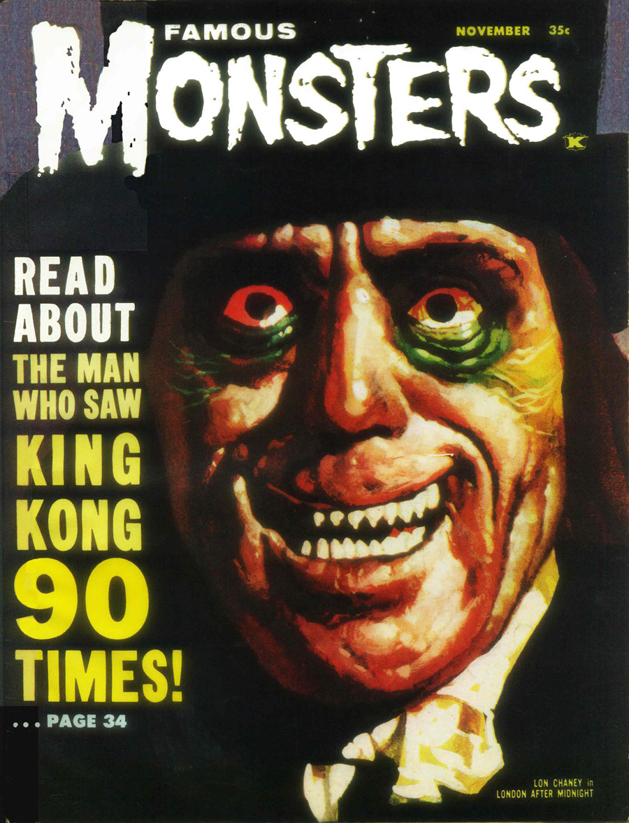 The first and best Monster Magazine was named Famous Monsters Of the Filmland. It was published for decades by James Warren and edited by Forrest J. Ackerman from 1958 to 1983. With Warren as publisher the magazine eventually produced 191 issues, all with Ackerman as the editor. It was revived in several forms in the years following and is still being published annually although without the success of its earlier years. I am presenting only the first 30 issues, the ones that I'd read or wanted to read. To see them, click on the issue that interests you.