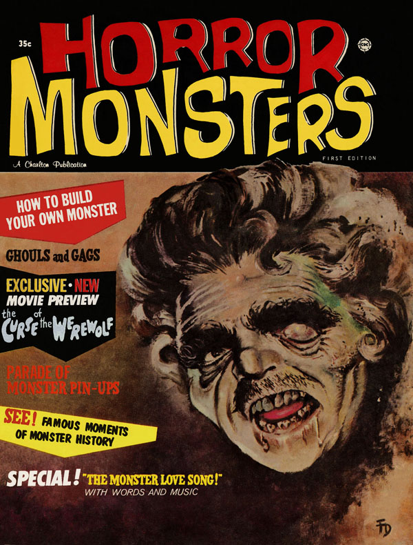 This magazine, Horror Monsters, was one of two titles published by Charlton Publications. I had two issues of them, Horror Monsters #4, and of its sister publication, Mad Monsters #4. They were at best just OK. I liked reading them but they were both very derivative. I have only been able to find one of the two I'd once owned: Horror Monsters #4 I also found the first issue. To see these magazines, just click on their covers below.