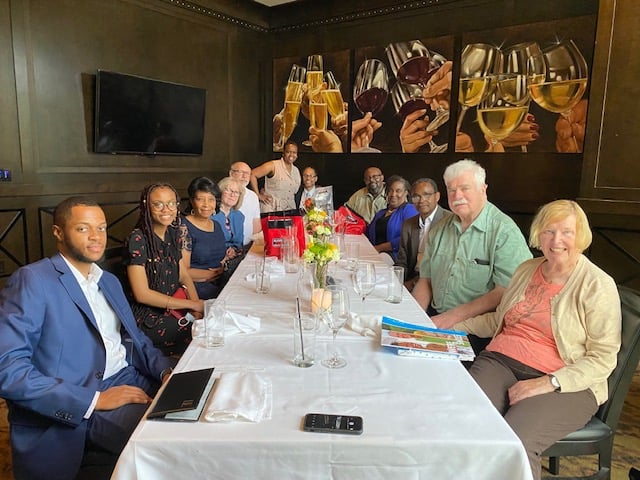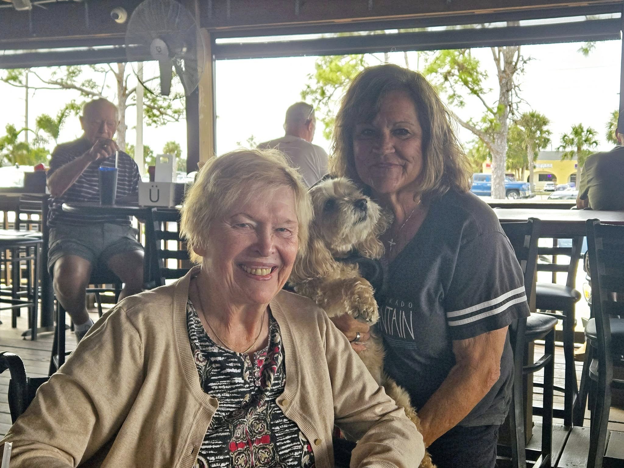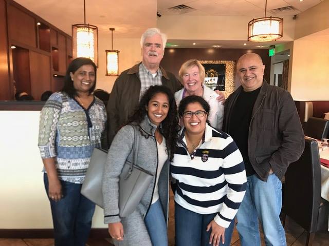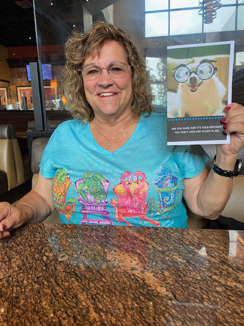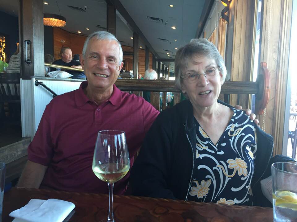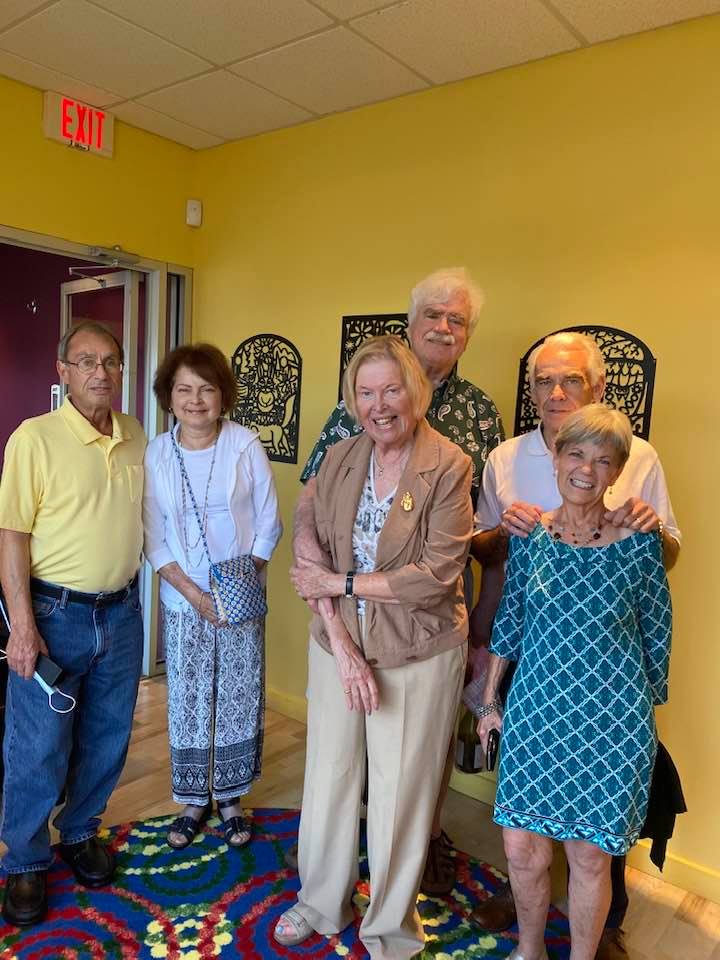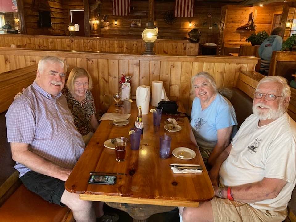 Celebrating one of Ginnie's significant birthdays with friends Karen and Joel Williams and Nancy and Roy Dyer
