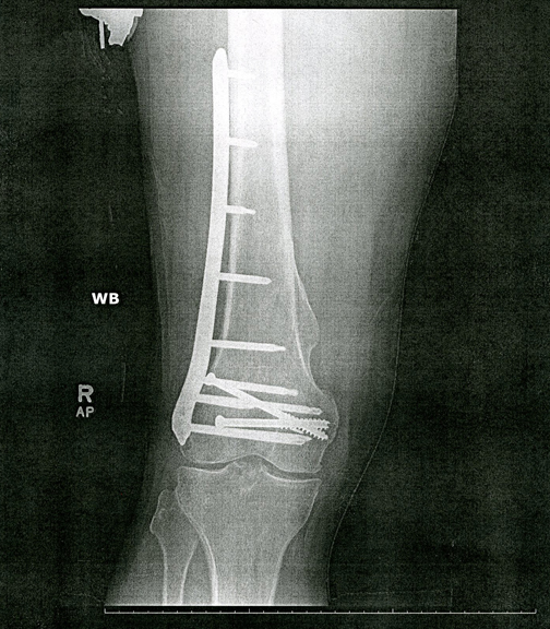 In 2002 I suffered an automobile accident and broke my right femur, badly, near my knee. It required surgery to put it all back together again and the surgeon left a bracket in my leg where it had been since January, 2002.