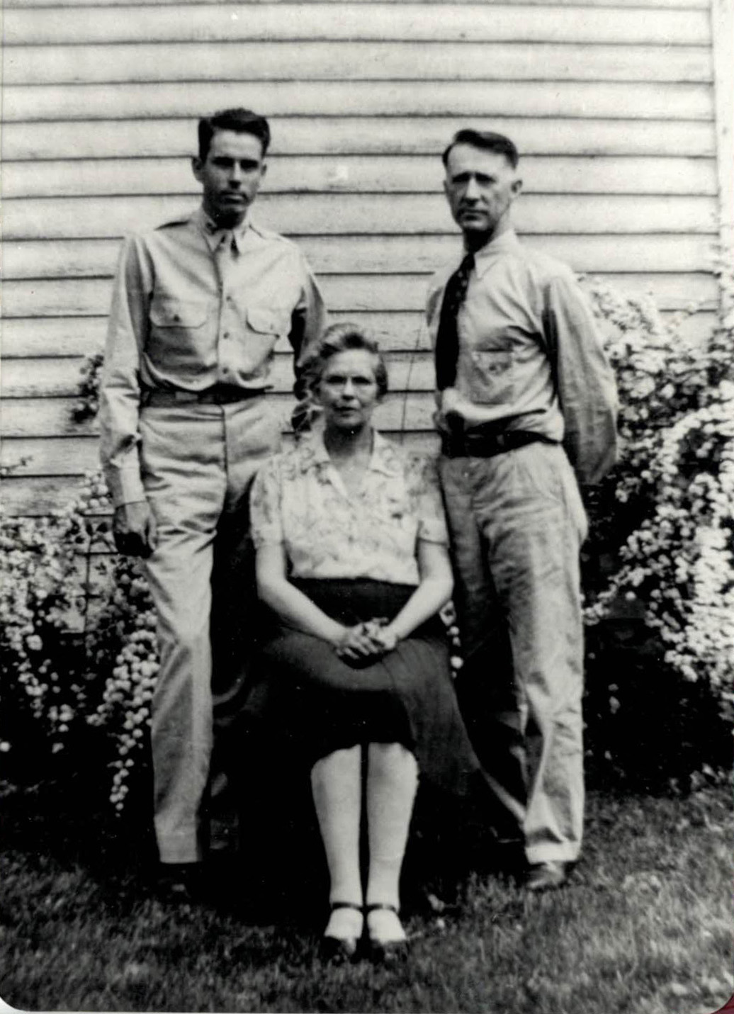 My Dad, Captain Vendrell L. Spargur, home on leave in about 1943 during World War II with his parents, Ada and Herschell Spargur.