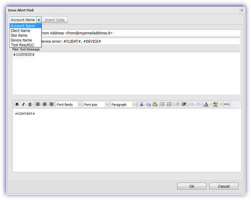 - Choose the Error Alert Mail or Alert Recovery Mail