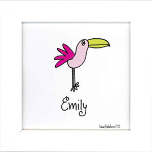 Doo Lollies can be framed in these simple, brightly-colored wooden frames. You may pick from any of the doo lollies and personalize them with names or birthdates. These are also available unframed.