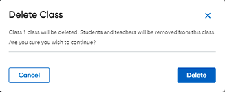 b. Click Delete. A message appears confirming that the class is deleted from the school. |