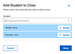 a. Click the Add Students to Class button to add one or more students to the class.