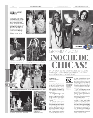 SHOW ción de Los Grammys estuvo a fa- mios en total una gran presentación sobre el es-