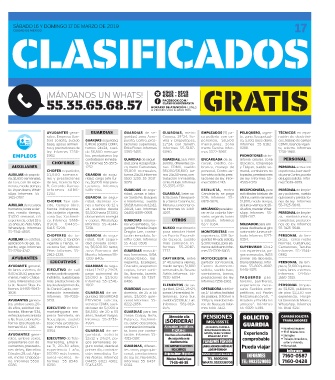 experiencia, edad 18 a co. Informes 5555- y copias, WhatsApp. GUARDIAS intramu- OTROS a sábado. Informes completos, prestacio-
