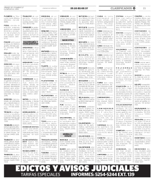 SÁBADO 16 Y DOMINGO 17 CIUDAD DE MÉXICO 55.35.65.68.57 CLASIFICADOS B! 21