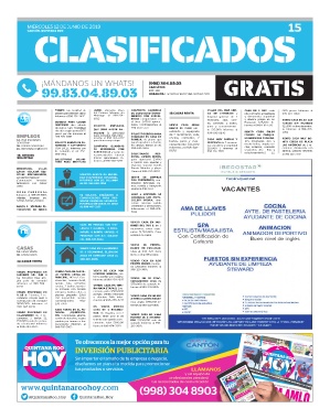 DESCANSO días sábado SOLICITO EMPLEADA nales, Contrataciones al RENTA CASA GRAN patio y estacionamien- formes al 998-116-7370 $15,900 en fraccionamien-