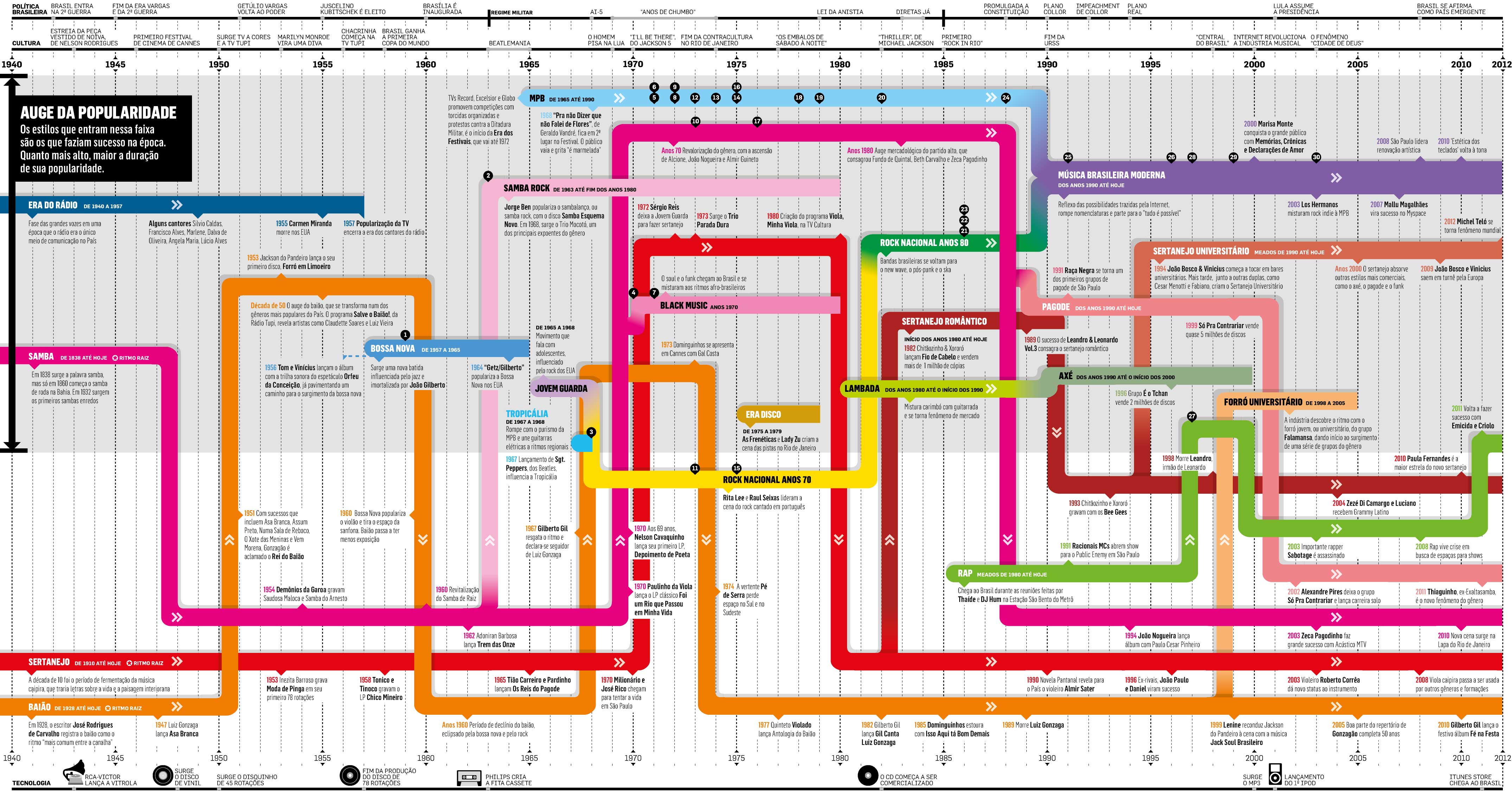 Ao longo das décadas, vários ritmos e movimentos musicais tiveram seu auge de popularidade. Navegue pela linha do tempo e acompanhe a evolução de cada gênero
