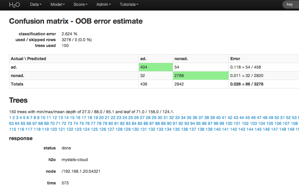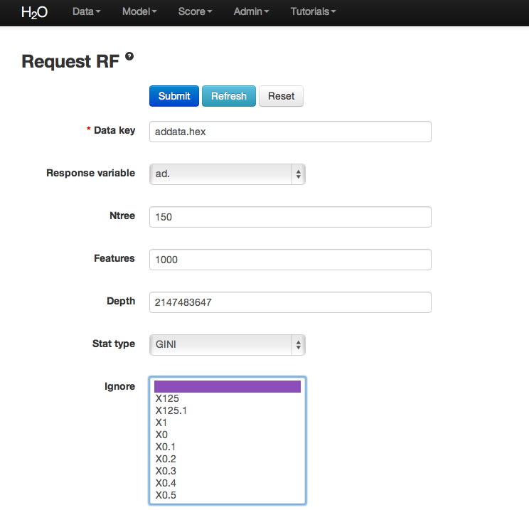 - In the “ntrees” field, specify the number of trees to build (in this case, 150).