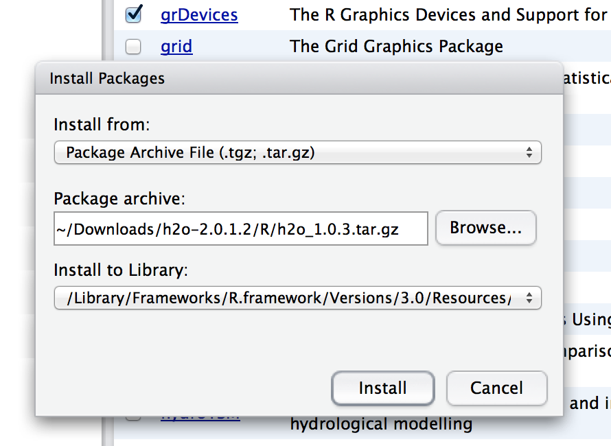 Start the H2O package by clicking the check box next to the package name h2o.