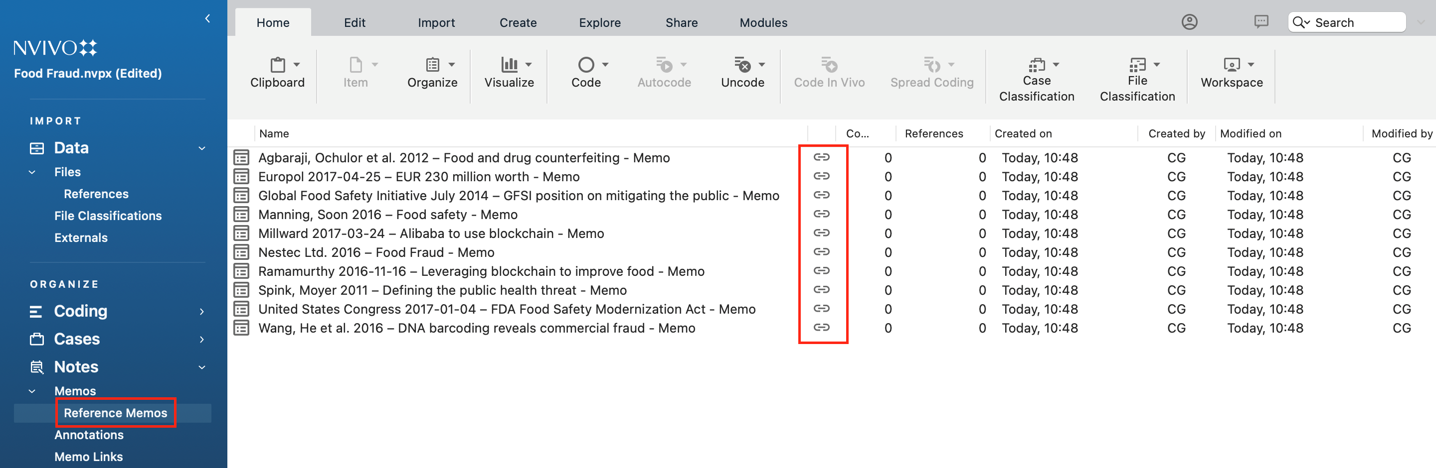 The selected Citavi data are imported into the current NVivo project. For more information on Citavi-NVivo data mapping, see section below.