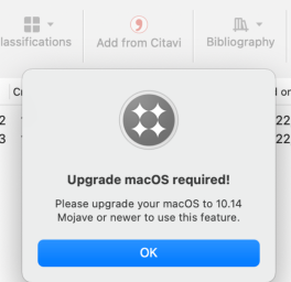 NOTE Clicking on Add from Citavi on the macOS under 10.14, the following dialog will be displayed.