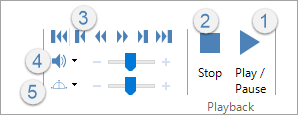 1 Play and pause—play the media from the beginning or from a selected point on the timeline. Play changes to Pause while the media is playing.
