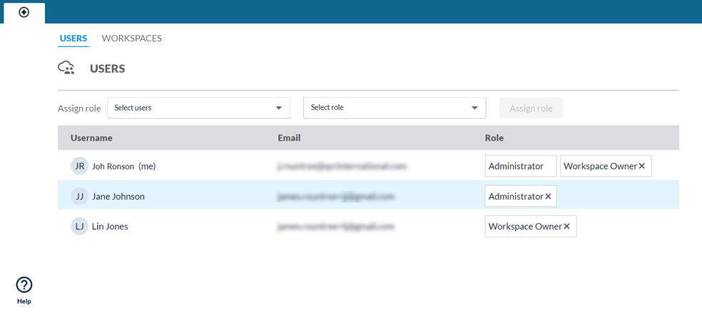 2. The workspace owner/manager opens the workspace and adds other users to it. They must be assigned workspace roles: workspace manager, collaborator, or both. Add users and assign roles (and share master file)