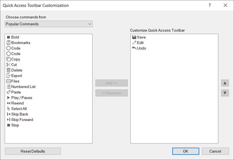 in the toolbar and select commands to add or remove. Access every command in NVivo and order them from the More Commands option.