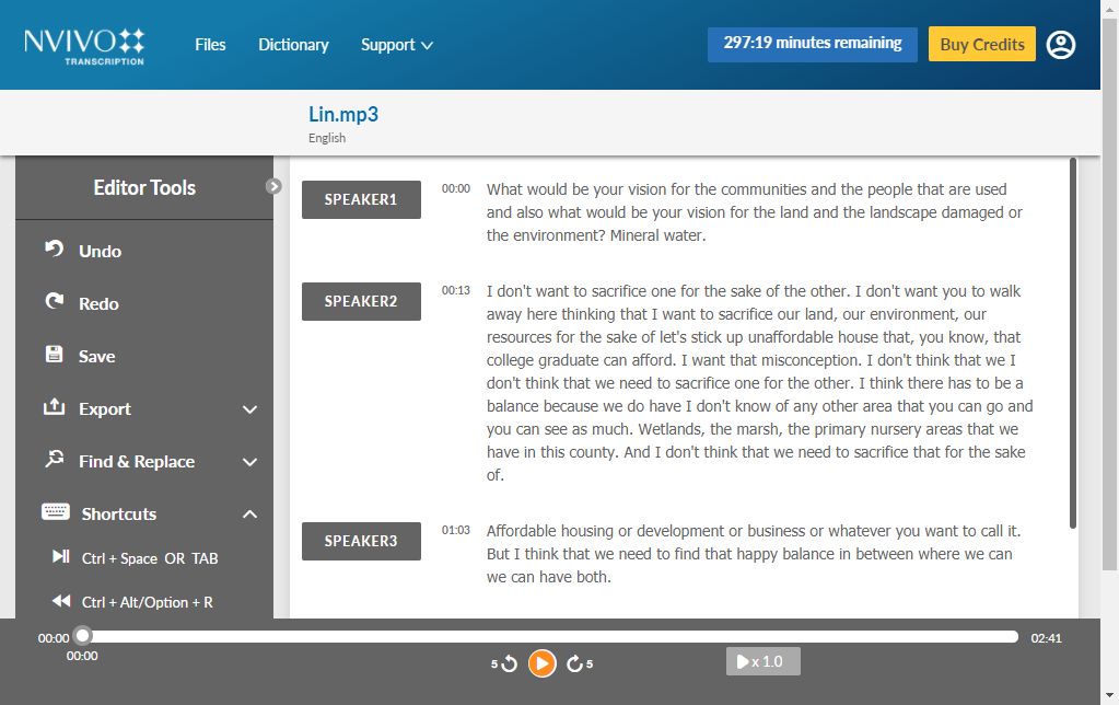 8. If necessary you can edit further in NVivo Audio and video transcripts.