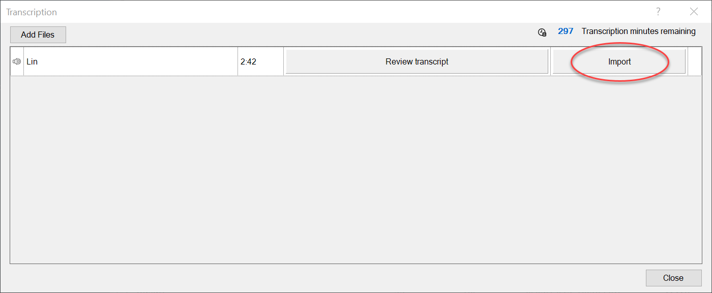 6. Return to the NVivo Transcription dialog box in NVivo and click Import.