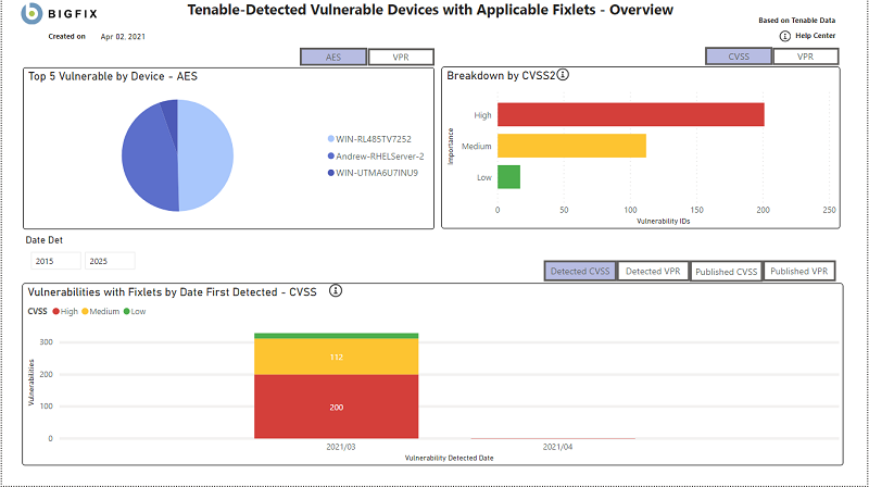 Tenable.io. With Tenable Lumin available, BigFix Insights for Vulnerability Remediation