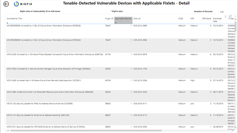 - Applicable Devices - devices that have been scanned by Tenable and for which vulnerabilities have been identified
