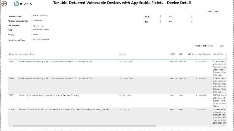 - AES - Asset Exposure Score: A metric that combines ACR & VPR (Vulnerability Priority Rating) into a single score to represent an asset’s relative exposure.