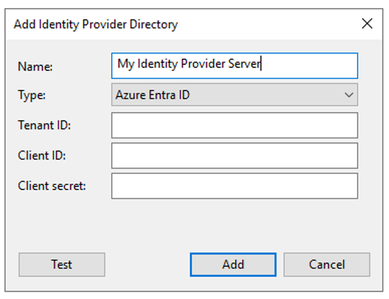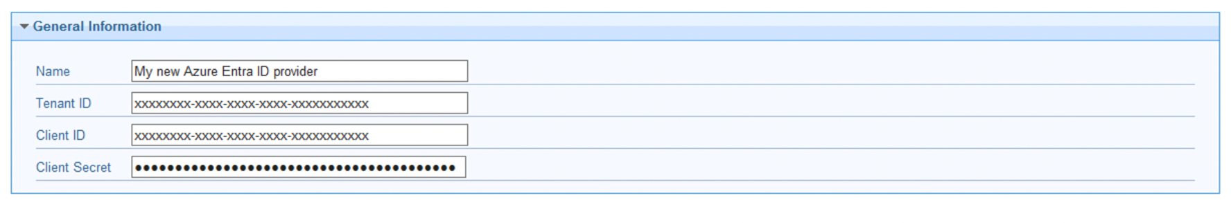 In the new dialog, the following information are required to set up Microsoft Entra ID: