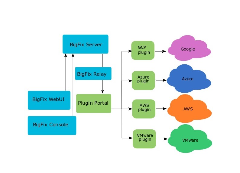 BigFix Console and WebUI provide operators with a single representation of a cloud resource, regardless of whether it is managed by the BigFix Agent, by the The Plugin Portal through the cloud plugins, or by both. This way, you as an operator can have complete visibility into and control over your cloud infrastructure.