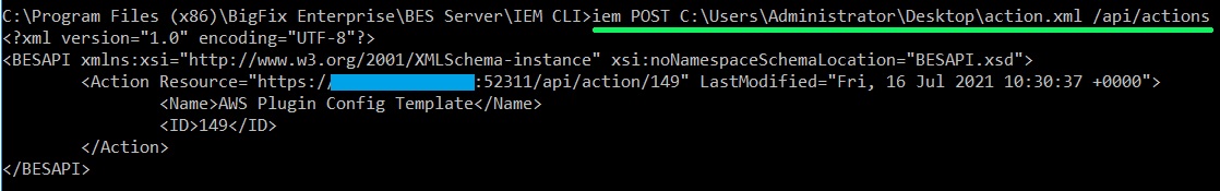 iem POST <path to action.xml> /api/actionsThe output will be something like this: