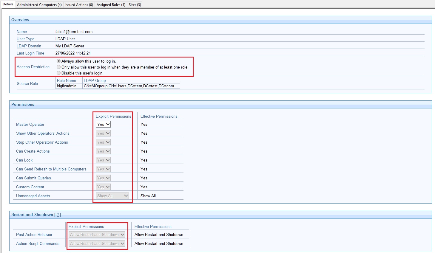 The roles will be inherited according to the LDAP groups - BigFix roles association.