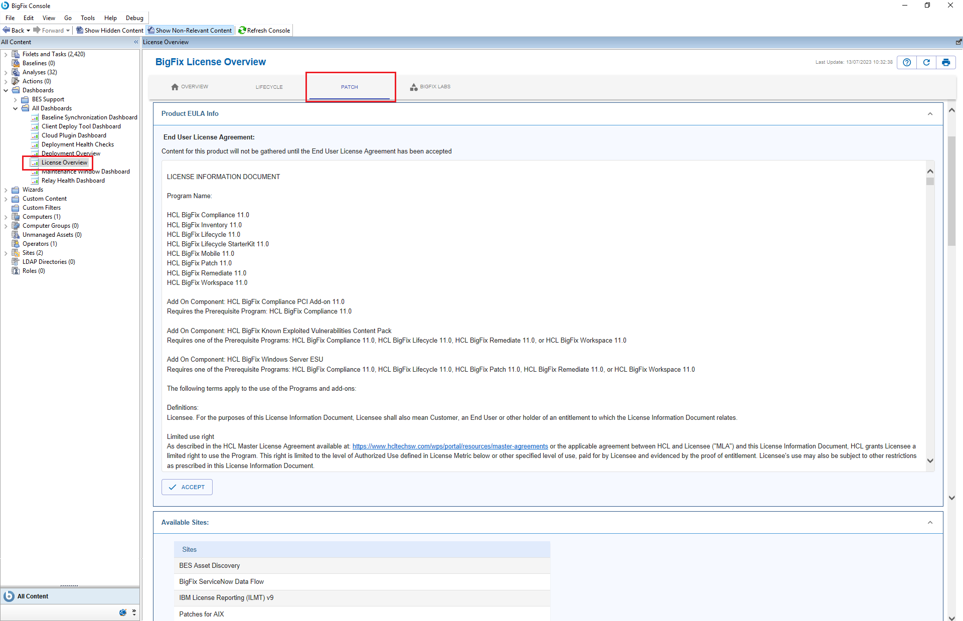 - In the Available sites click Enable beside BES Asset Discovery, Patches